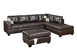 Check out new Bobkona Rui 3-Piece Bonded Leather Reversible Sectional Sofa with Matching Ottoman, Dark Brown with Secure Transaction.
